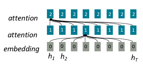 지금까지 우리가 본 seq2seq + attention 구조에서는 Decoder의 각 hidden state (query)가 Encoder의 모든 hidden state (value)에 attention한다. (즉, 어떤 정보가 필요한지 attention을 통해 결정!)