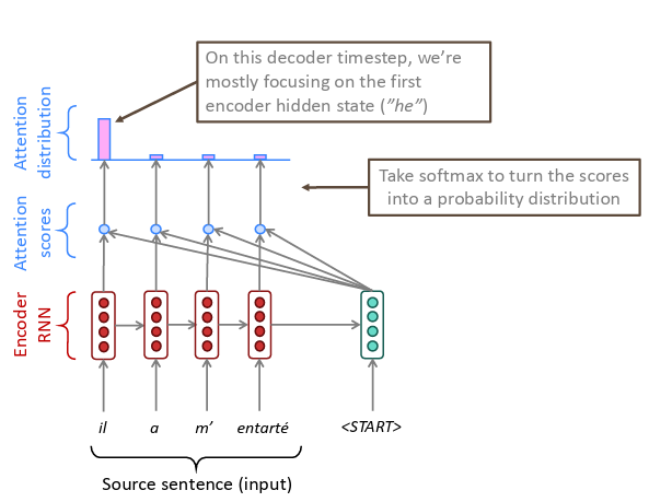 즉, 각 st가 encoder hidden state에 대해서 얼마나 집중할지 확률처럼 해석 가능!!